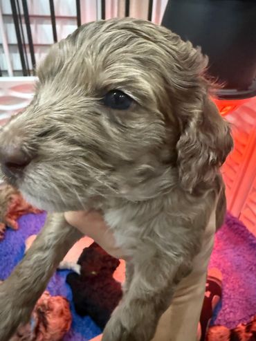 We are so pleased to find Teddy in our long search for the perfect pairing for Stella. Teddy is a 20# Goldendoodle that is nearly 1/2 Golden Retriever. This was a perfect opportunity to match our poodle girl with a boy that is small but clear of any genetics we avoid. He has a straight coat that will give all the puppies in this litter wavy coats and the same percentages as an F1B. All of that greatness aside, the reason we picked Teddy overall is because he is a mature stud that has a track record of producing therapy and facility companions. We chose Teddy to fit our want to place a service prospect that is at the top of our list!
